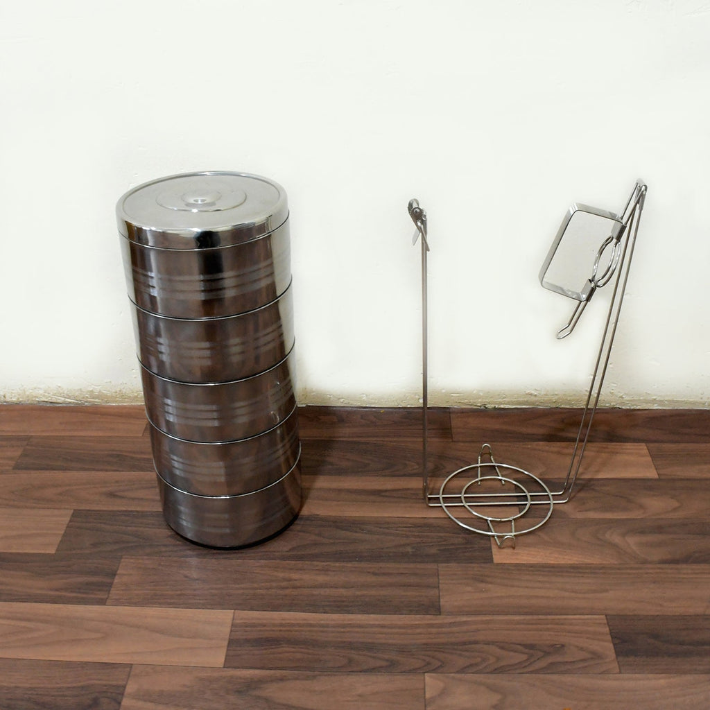 - CONVENIENT AND COMPACT: The Stainless Steel 5 Compartment tier Lunch Box offers a practical solution for carrying your meals on the go. Its round shape and compact size make it perfect for kids, college students, and office-goers.