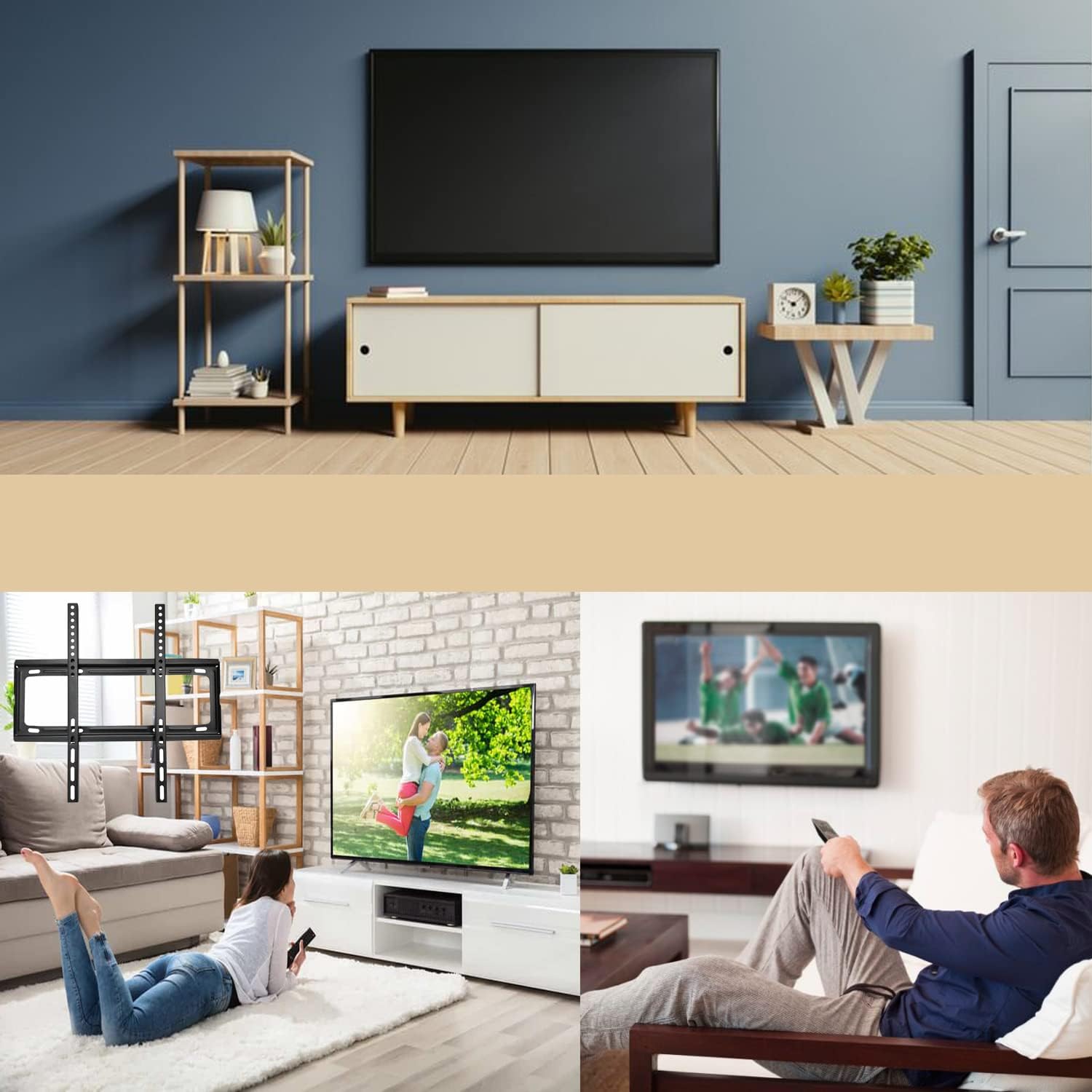 - Installation Methods: Our TV wall bracket comes with all the necessary tools and accessories, supports flat televisions. With the concrete anchors provided, it can be hung on any brick or concrete wall.