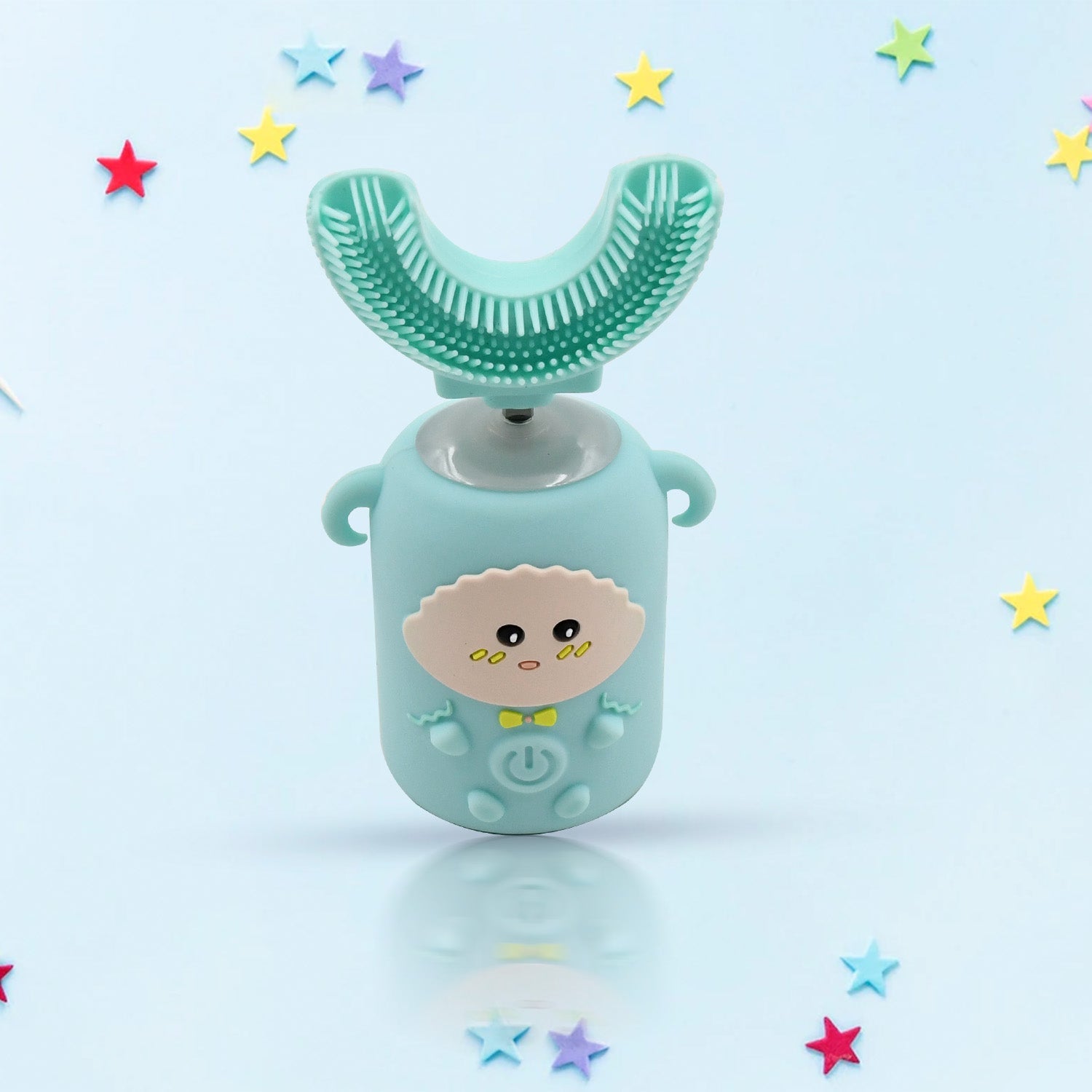 - CONVENIENT AND SAFE Using a 360 dgree ushape electric toothbrush is a fantastic way to develop good brushing habits. U-shaped ultrasonic design allows you to free your hands when brushing your teeth and improve your living efficiency. This ultrasonic electric toothbrush adopts all-round waterproof seal design convenient and resistant use, safe clean.